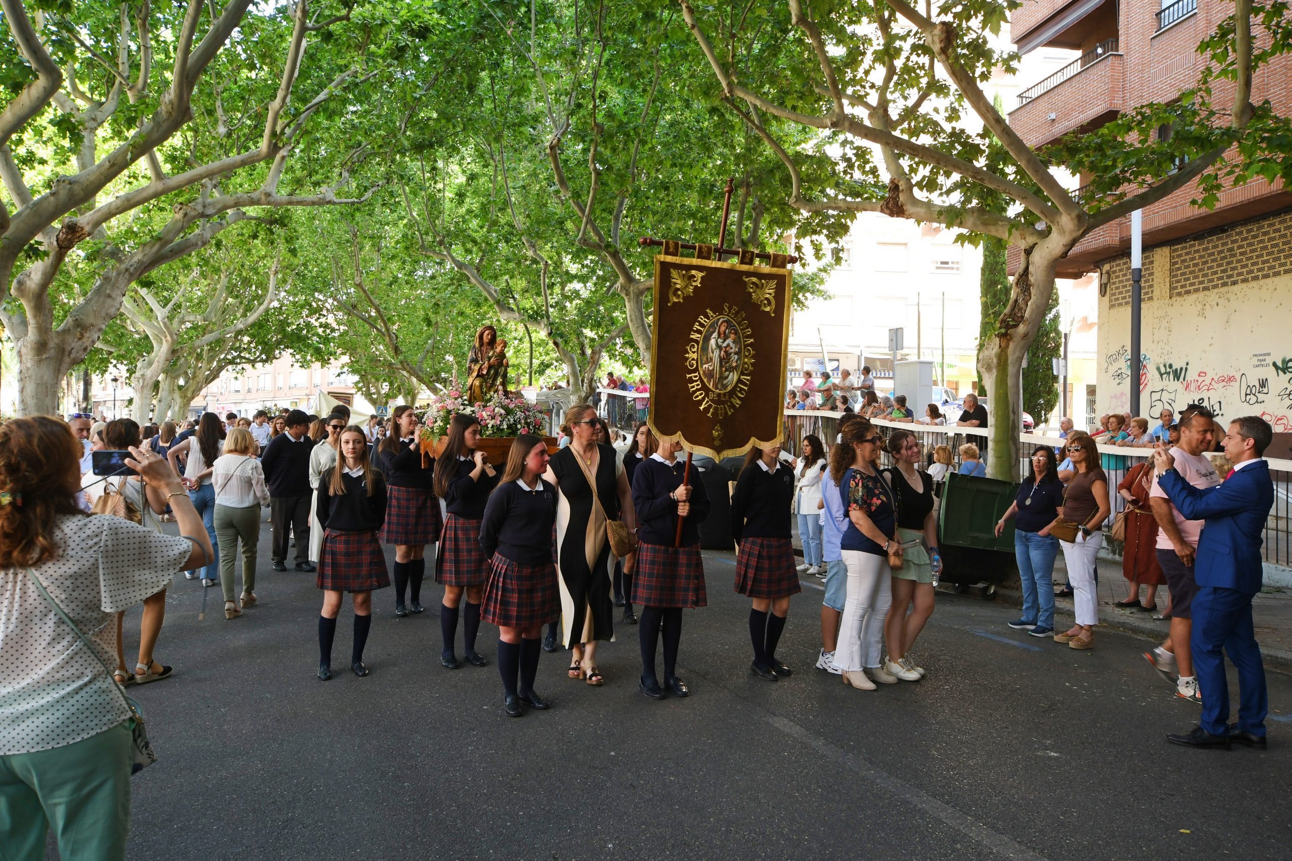 El sábado 31 de mayo se celebró la salida procesional de la patrona de la ciudad de la cerámica, la Virgen del Prado, con motivo del Jubileo de la Esperanza. Nuestro centro, como todos los colegios religiosos de Talavera y muchas parroquias de poblaciones cercanas, participó en dicha procesión con la imagen de Nuestra Señora de la Providencia, que fue portada por alumnos de 4º de Secundaria y acompañada por numerosas familias.
